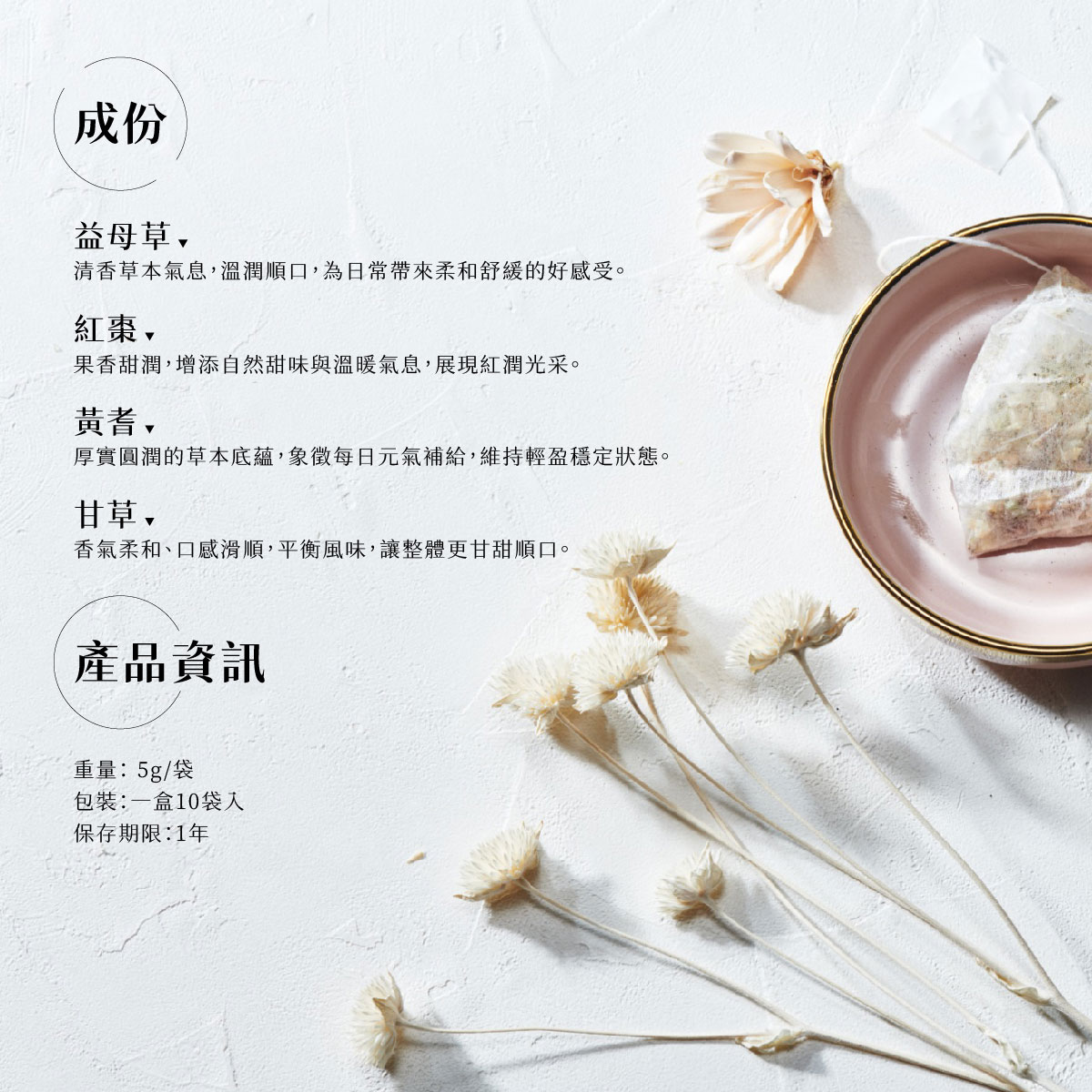 :白色勾勾: 無添加香料防腐劑|純天然草本乾燥製成:白色勾勾: 熱飲香氣溫潤、冰飲也能柔和順口